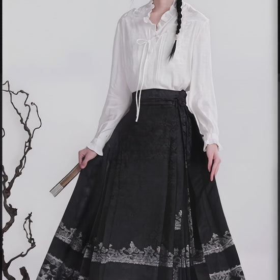 Traditional Chinese horse-face skirt | Black and white retro art print (modern retro style)